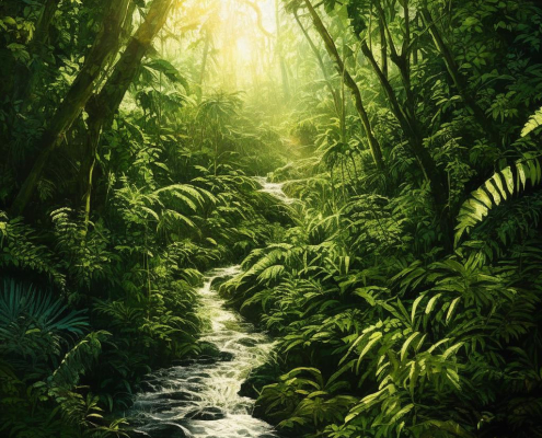RegularA dense jungle scene with a winding stream