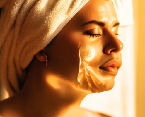 RegularClose-up of a woman’s neck and ear with a towel turban