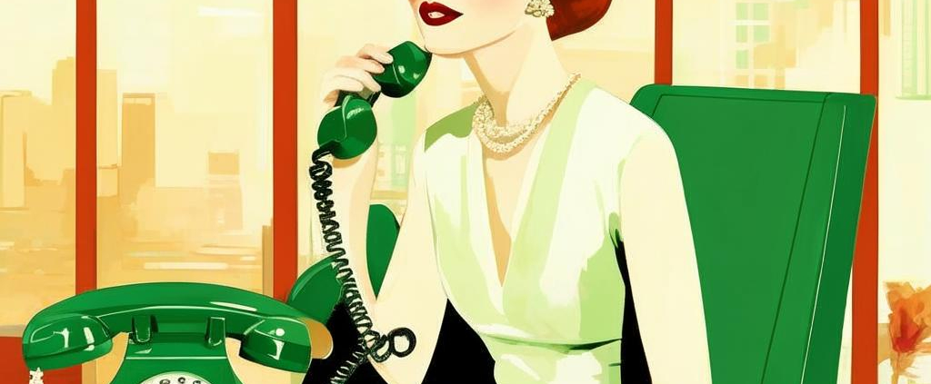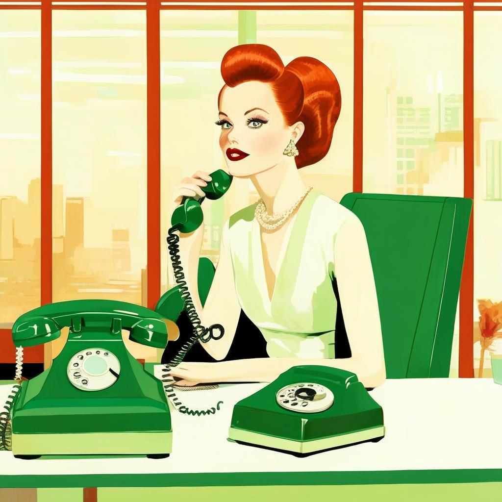 A 1961 Mary Tyler Moore-inspired redhead in spring green and cream commands the office