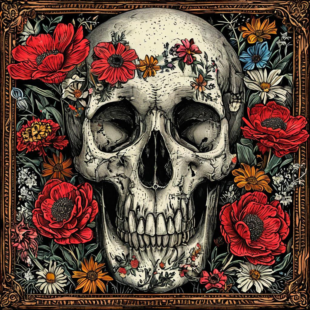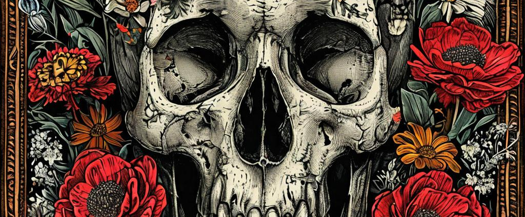 A chaotic skull blooms in Apollonia Saintclair’s style
