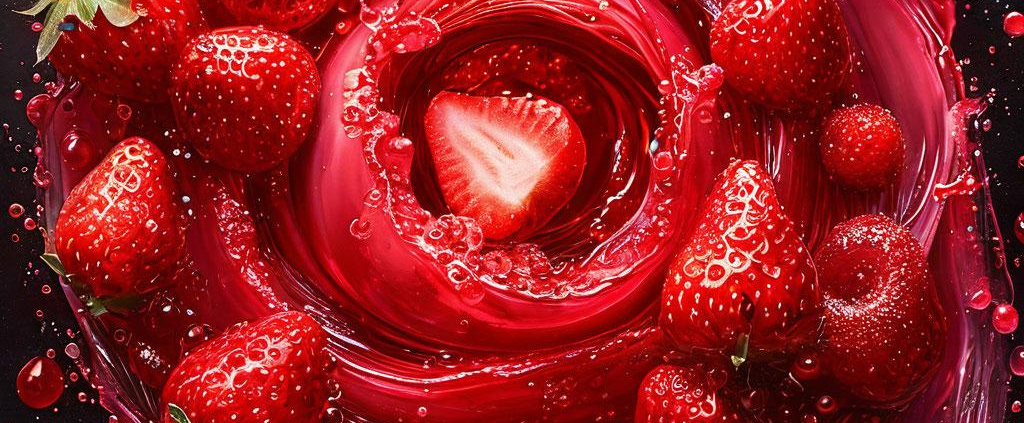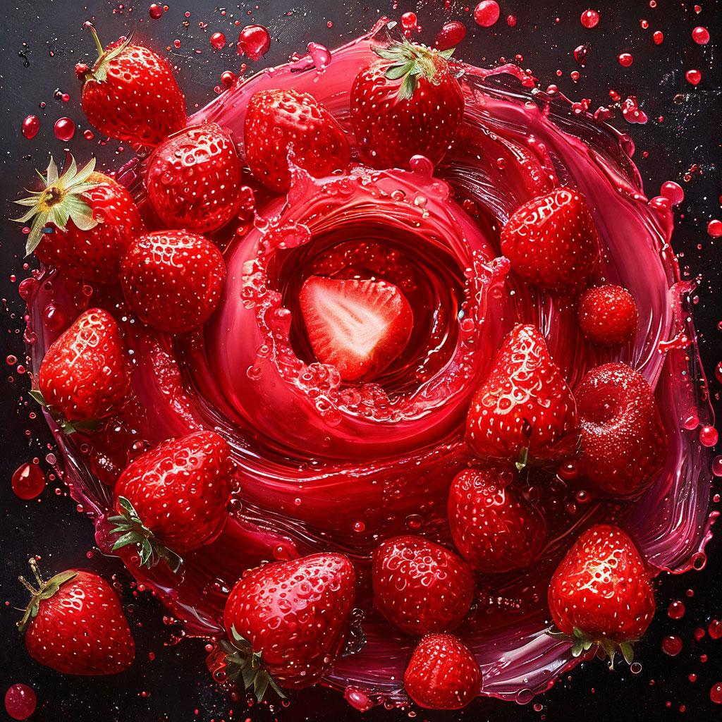 A glossy strawberry tornado swirls