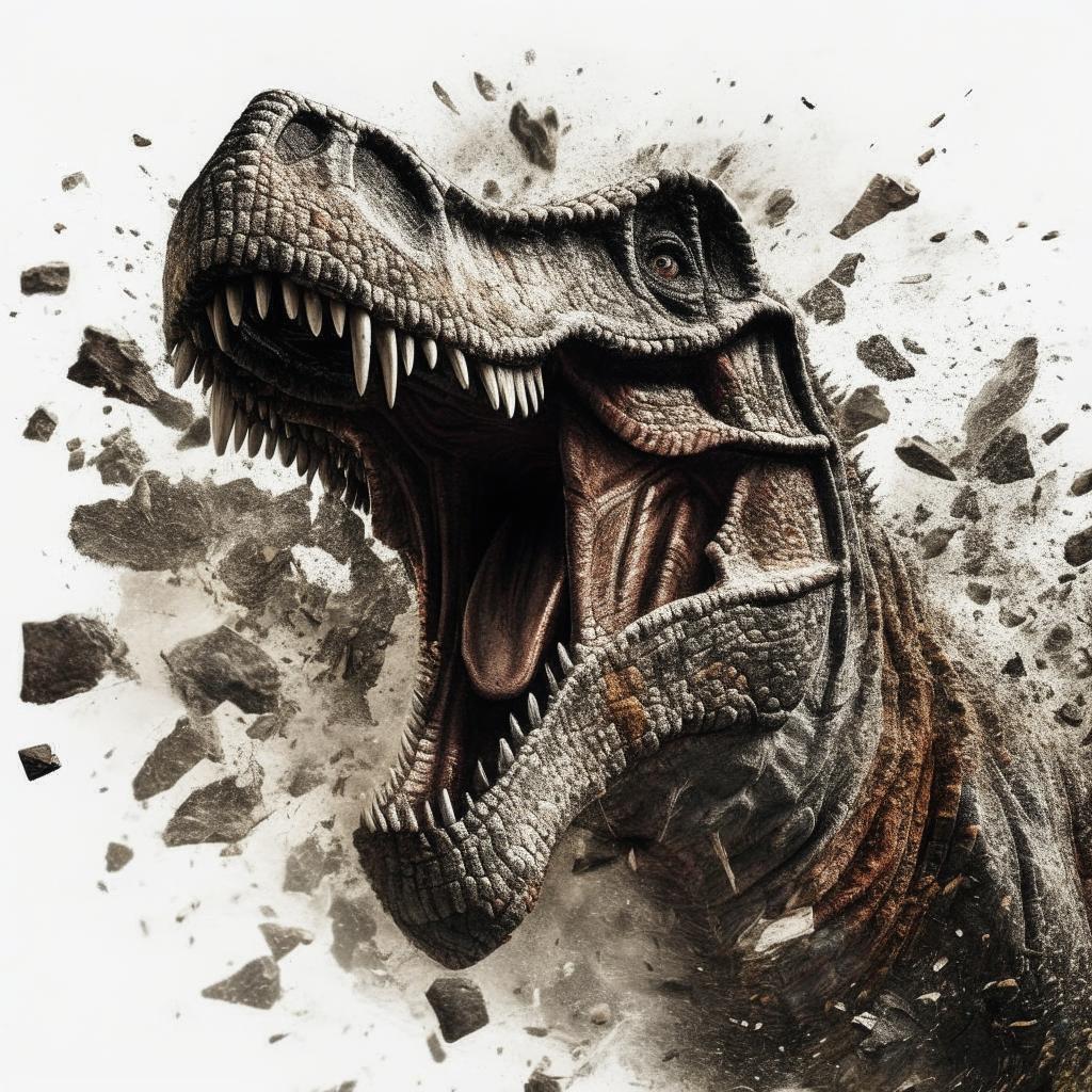 A high-resolution T-Rex smashes through a wall