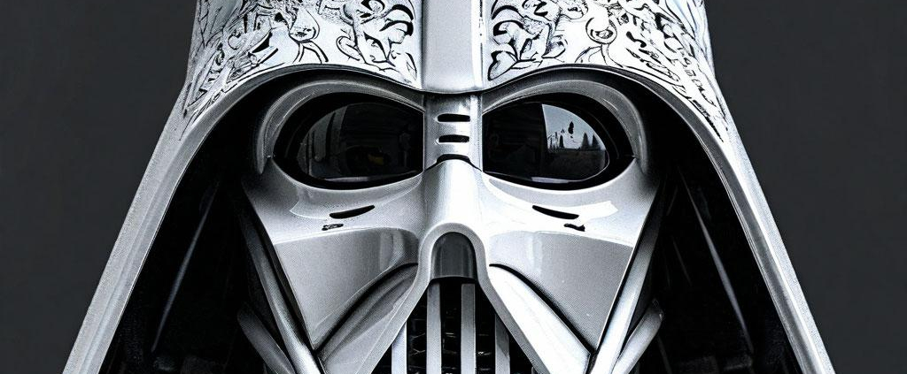 A hyper-realistic 4K portrait of a white porcelain Darth Vader mask