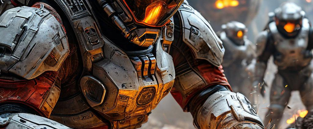 A male engineer in a dusty spacesuit urgently welds a breach as alien forces close in