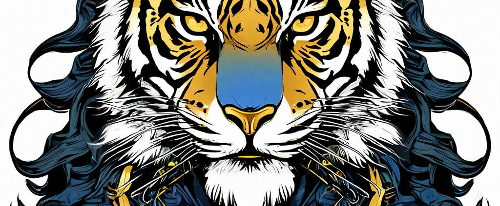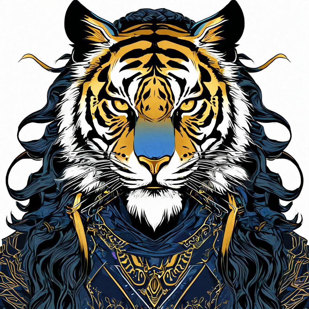 A sleek midnight and gold tiger oni