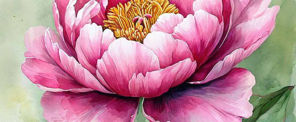 A soft pink peony blooms in watercolor