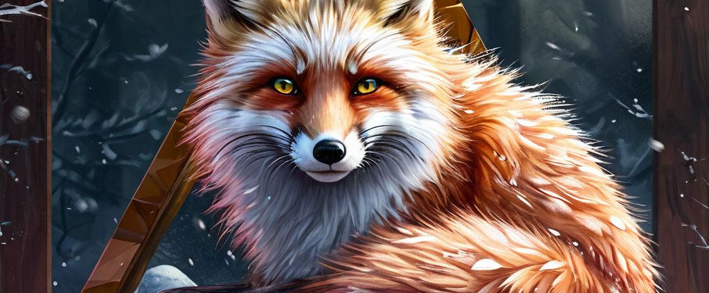 A vibrant snow fox rests on a geometric triangle