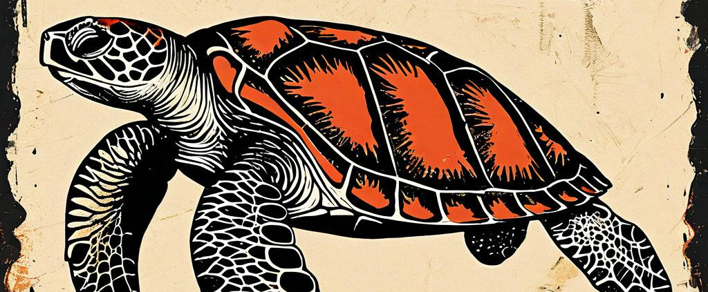 A vintage postage stamp with an engraved sea turtle