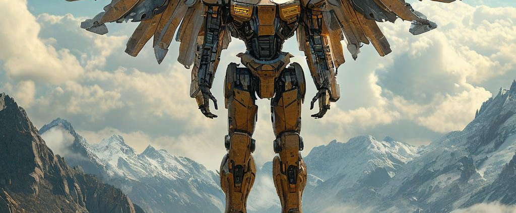 An angelic robot prays atop Mount Cutlass