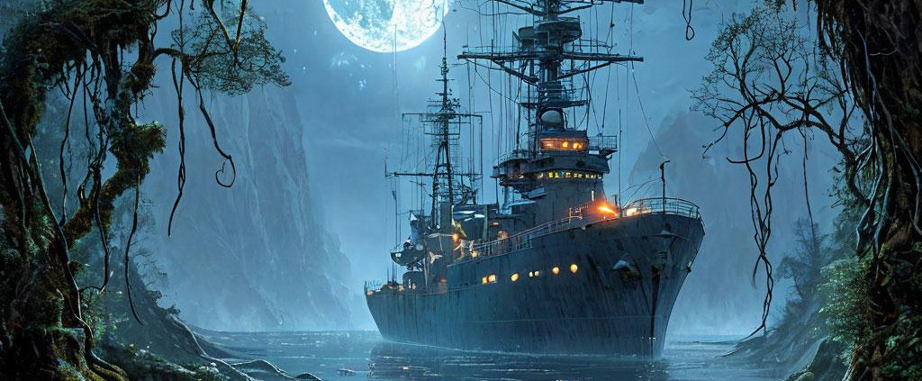 Serenity’s cargo bay glows in the misty moonlight