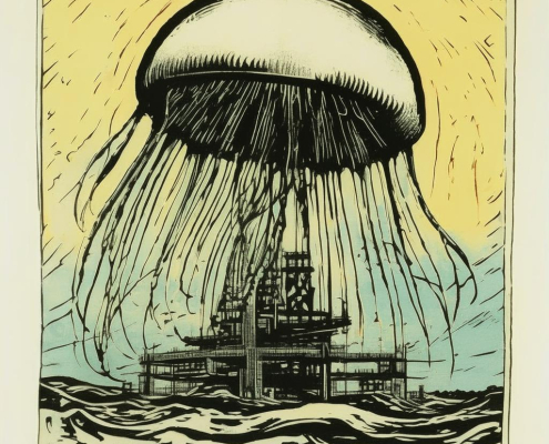http://promptline.art/wp-content/uploads/2025/11/image_a073eb2d-5ba8-445e-a0bc-c864a9d79fb1.jpg10241024promptlinehttps://promptline.art/wp-content/uploads/2025/04/logo12-300x138.pngpromptline2025-11-03 22:06:062025-11-03 22:06:06GOGOJIFAM” – 70s comic style lino-cut logo of a giant jellyfish attacking an oil rig in Japanese ink art