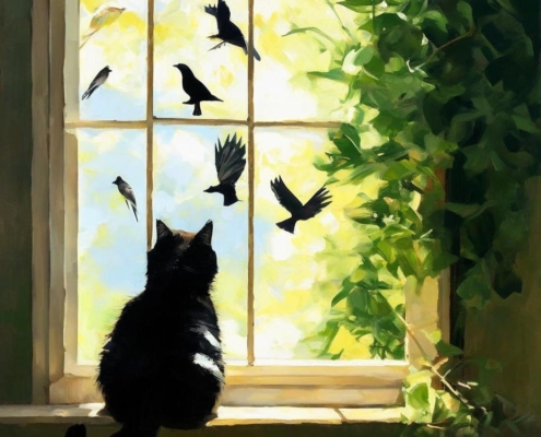 https://promptline.art/wp-content/uploads/2025/09/image_2aae2711-ba6e-4016-9e44-ca6e1754e200.jpg10241024promptlinehttps://promptline.art/wp-content/uploads/2025/04/logo12-300x138.pngpromptline2025-09-04 11:22:232025-09-04 11:22:23A whimsical black and white cat gazes from a window at birds chirping in a sunlit green tree