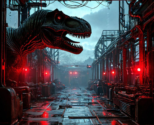 promptline2026-01-12 13:56:172026-01-12 13:56:17Containment breach! T-Rex silhouette triggers flashing red alarms on the sci-fi HUD