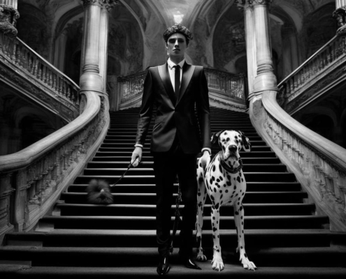 https://promptline.art/wp-content/uploads/2025/10/image_0ee9da03-8570-4257-8a36-d514098f2bca.jpg10241024promptlinehttps://promptline.art/wp-content/uploads/2025/04/logo12-300x138.pngpromptline2025-10-04 05:51:312025-10-04 05:51:31An avant-garde tuxedo-clad model confidently holds a colossal Dalmatian’s diamond-studded leash on the MET Opera’s grand staircase