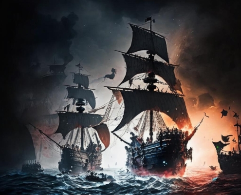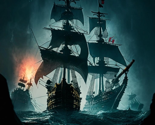 promptline 2025-09-15 05:32:22 2025-09-15 05:32:22 Two pirate ships loom through the mist