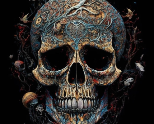 promptline 2025-09-14 03:38:04 2025-09-14 03:38:04 A skull rendered in Apollonia Saintclair’s chaotic style