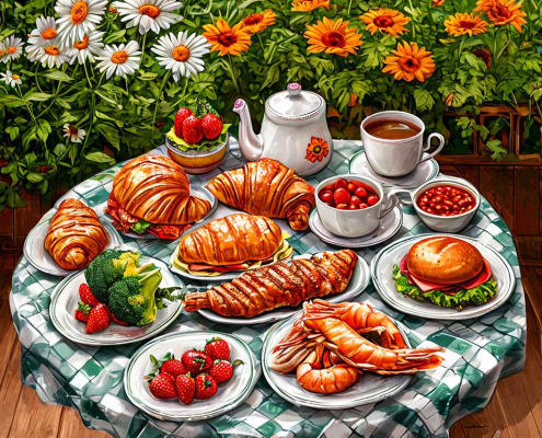 promptline2025-12-31 17:40:372025-12-31 17:40:37A sketch-style cafe table with a checkered cloth displays daisies