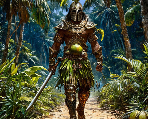 http://promptline.art/wp-content/uploads/2026/01/image_fbvo6s1qubrs0pd87btc.jpg10241024promptlinehttps://promptline.art/wp-content/uploads/2025/04/logo12-300x138.pngpromptline2026-01-16 13:11:402026-01-16 13:11:40A warrior in green coconut-leaf armor strides down a dusty path
