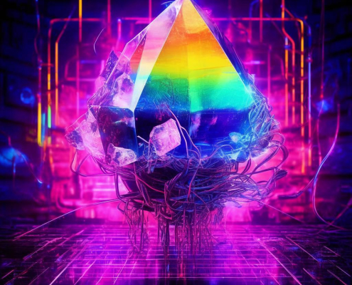 http://promptline.art/wp-content/uploads/2025/07/image_db72e03e-e9eb-4cbd-8efa-3a5c44d76373.jpg10241024promptlinehttps://promptline.art/wp-content/uploads/2025/04/logo12-300x138.pngpromptline2025-07-07 10:23:182025-07-10 08:22:28Surreal digital collage featuring a glowing rainbow quartz crystal with an embryonic microchip inside
