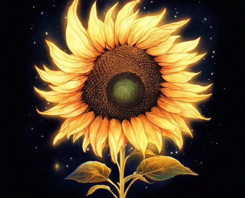 http://promptline.art/wp-content/uploads/2025/11/image_803d68f9-d4c9-4b91-8bc9-c4b6328e0d94.jpg10241024promptlinehttps://promptline.art/wp-content/uploads/2025/04/logo12-300x138.pngpromptline2025-11-04 21:50:372025-11-04 21:50:37A glowing chiffon sunflower blooms as the moon in the night sky