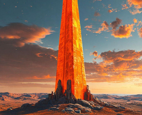 promptline 2025-10-13 11:44:20 2025-10-13 11:44:20 A tall sci-fi brutalist obelisk with orange neon lights stands on Mars’ orange landscape –ar 9:16 –v 7 –stylize 250