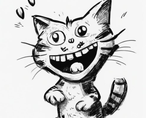 promptline 2025-09-04 07:29:22 2025-09-04 07:29:22 A chaotic scribble-style cartoon cat with wild fur