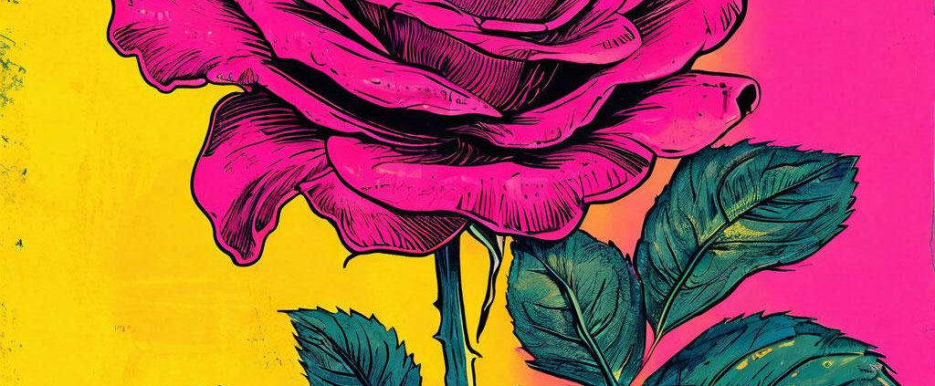 Vintage rose poster with neon acid tones and bold silhouettes