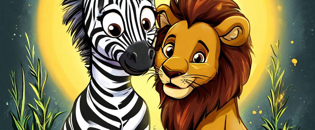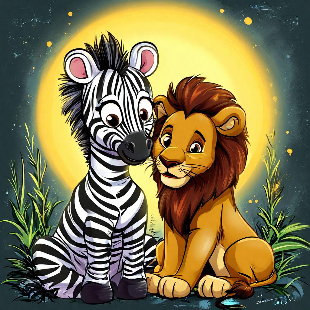 Zara the zebra comforts Leo the lion cub